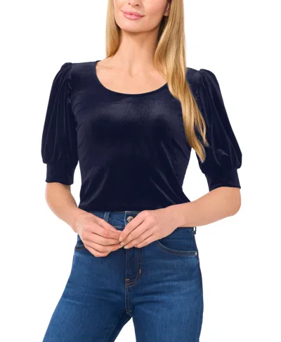 Women's Crew Neck Short Sleeve Velvet Top In Blue