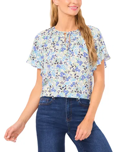 Women's Shirred Short-sleeve Front Keyhole Top In Blue