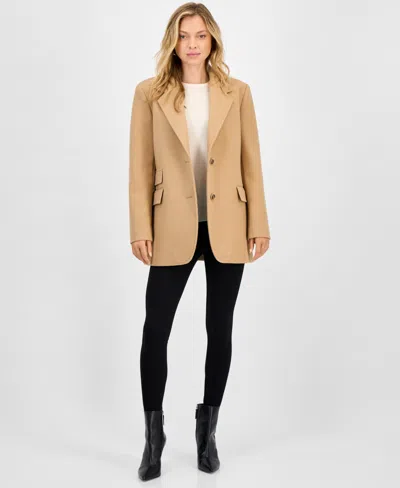 Women's Notched-collar Two-button Blazer Coat In Brown