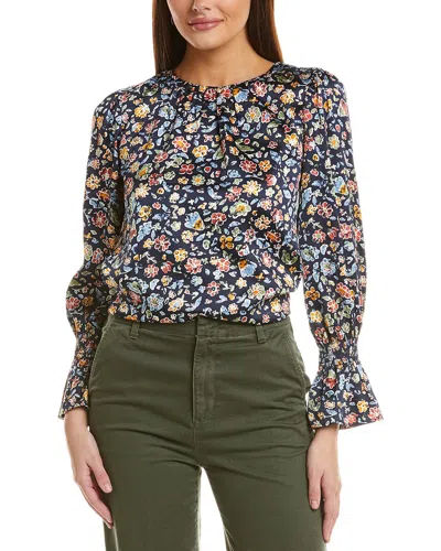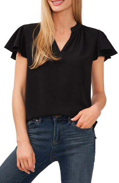 Elbow Sleeve Ruff V-neck Blouse In Blue