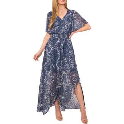 Floral Semisheer Smocked Waist Handkerchief Hem Maxi Dress In Blue