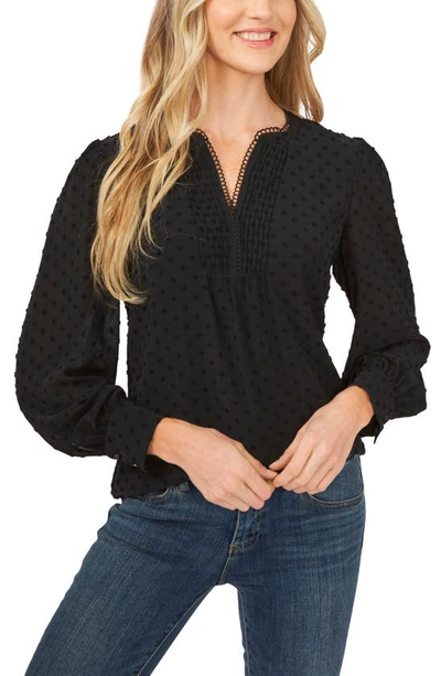 Clip Dot Long Sleeve Blouse In Rich Black