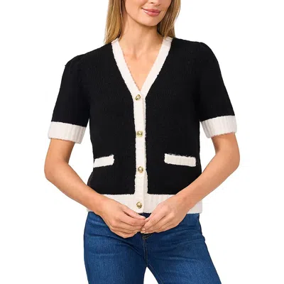 Womens Contrast Trim Knit Cardigan Sweater In Rich Black