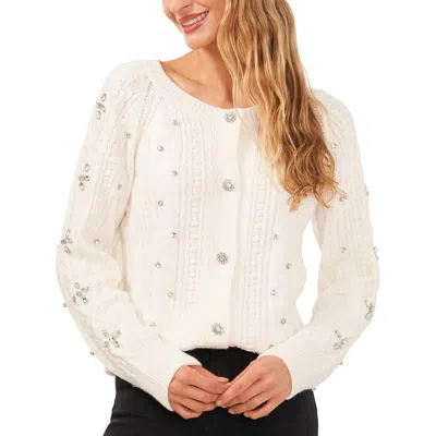 Womens Embellished Cable Knit Cardigan Sweater In Antique White