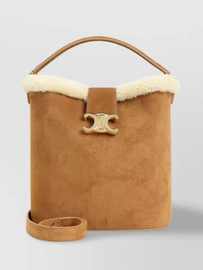 Medium Louise Bucket Bag With Shearling Trim In Brown