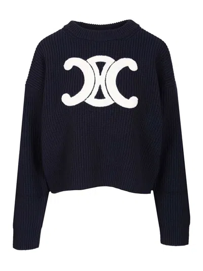 Women Triomphe Crew Neck Sweater In Fine Wool In Blue