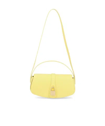 Smooth Cowhide Leather Strap Handbag In Yellow