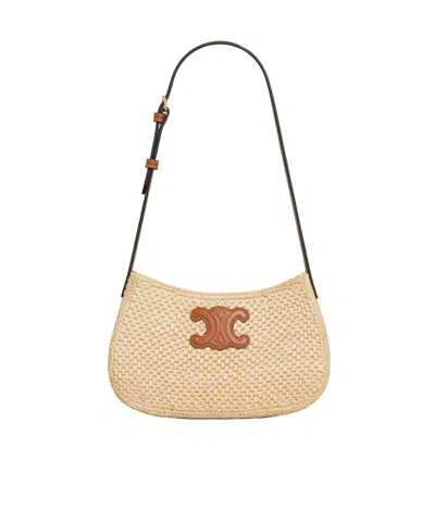 Medium Folco Bag In Triomphe Canvas And Calfskin In Beige