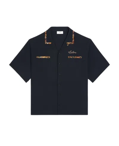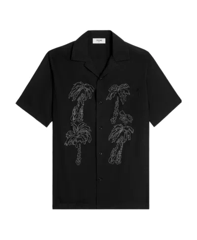 Embroidered Hawaiian Shirt In Viscose In Black