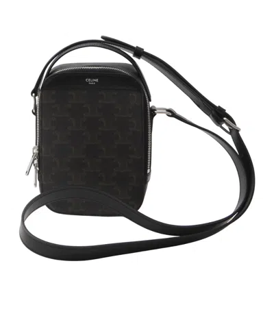 Triomphe Mini Leather-trimmed Logo-print Coated-canvas Messenger Bag In Black