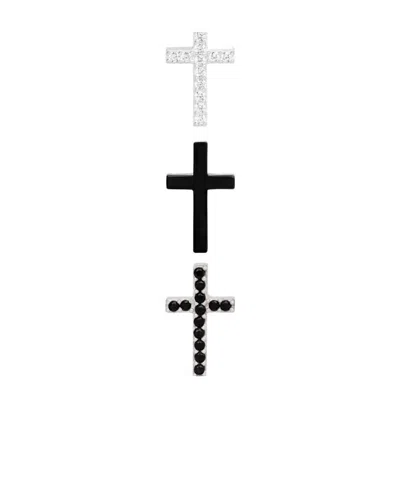 Cross Set Of 3 Studs In Brass With Rhodium Finish, Crystals And Varnish In Multi