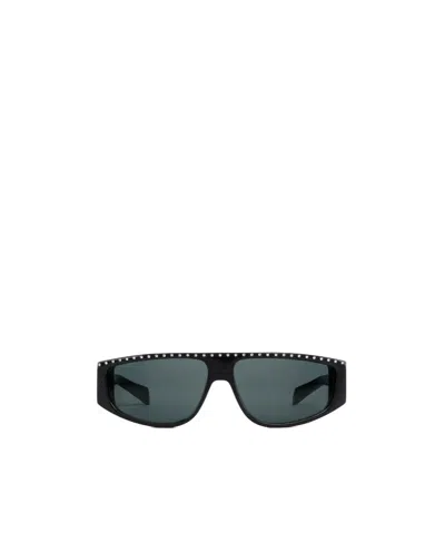 Sunglasses Rectangular Frame Curved Tips Studs In Black