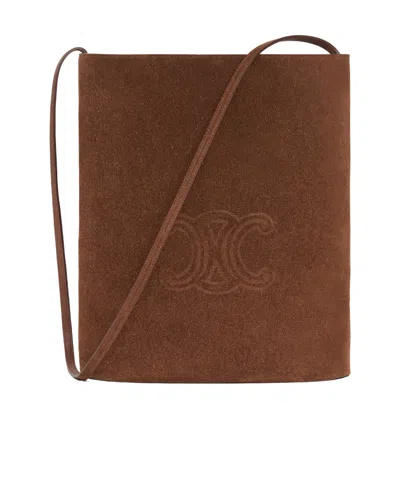 Triomphe Embossed Bucket Shoulder Bag In Brown