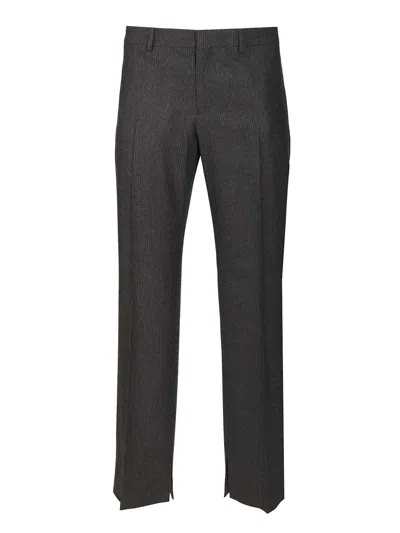 Men Striped Wool Flannel Trousers In Gray