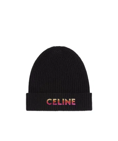 Rib Embroidered Wool Hat In Black