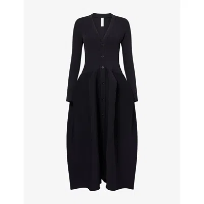 Ribbed-knit Ruffled Midi Skirt In Blue