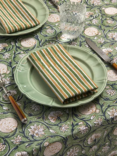 Dancing Star Block-printed Cotton Napkins (set Of 8) In Green