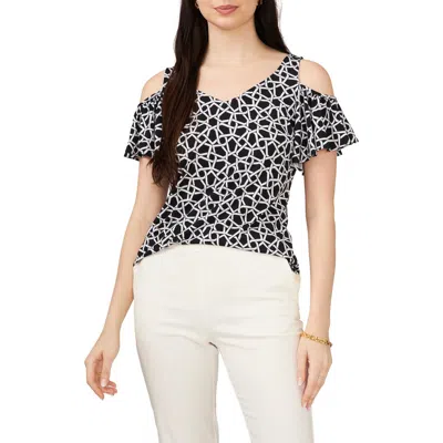 Rhinestone Trim Cold Shoulder Overlay Top In Black