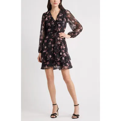 Floral Ruffle Trim Long Sleeve Chiffon Minidress In Multi