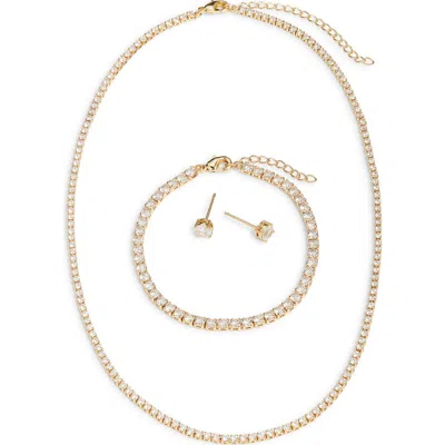 Cubic Zirconia Tennis Necklace, Bracelet & Earring Set In Gold