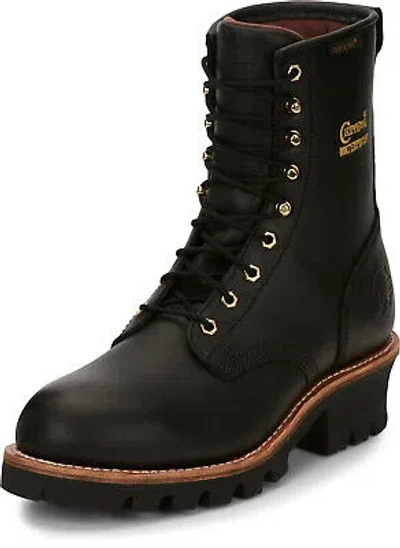 Pre-owned Mens Paladin 8in Wp Steel Toe 400g Logger Black Leather Work Boots