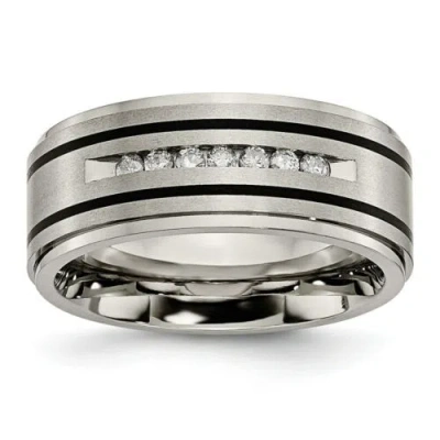 Pre-owned Titanium Polished/brushed Enameled 1/4ct Tw. Diamond 9mm Band