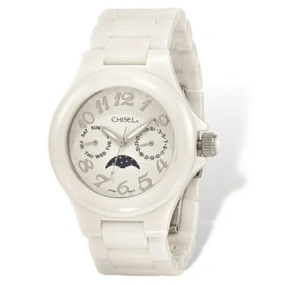 Pre-owned Women's Watch Quartz Moon Phase Ceramic Case White Dial Bracelet Tpw117