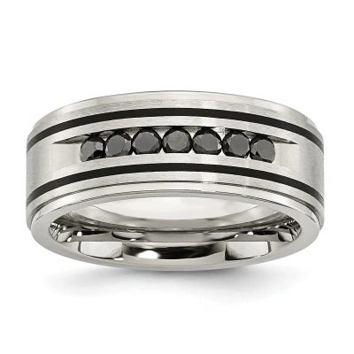 Pre-owned Stainless Steel Brushed & Polished Black Ip & Black Diamonds 9mm Band
