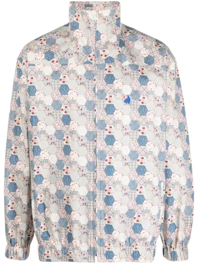 Geometric-pattern Cotton Lightweight Jacket In Blue