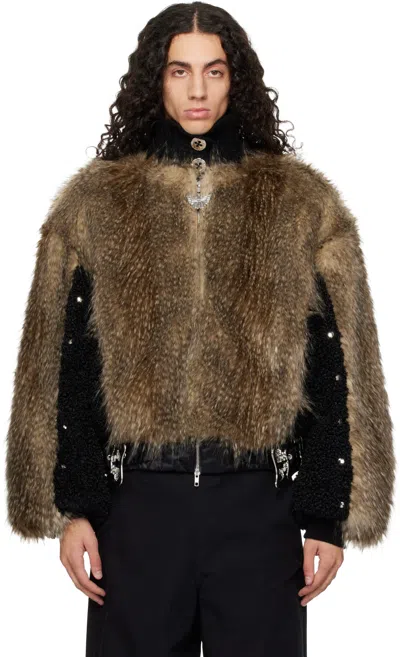 Brown French Kiss Faux-fur Bomber Jacket In Multi