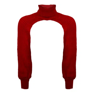 Women's White / Neutrals / Red Victorian Cut Out Shoulder Burgundy Sweater - Diffusion In White/red