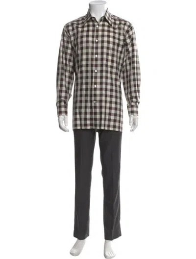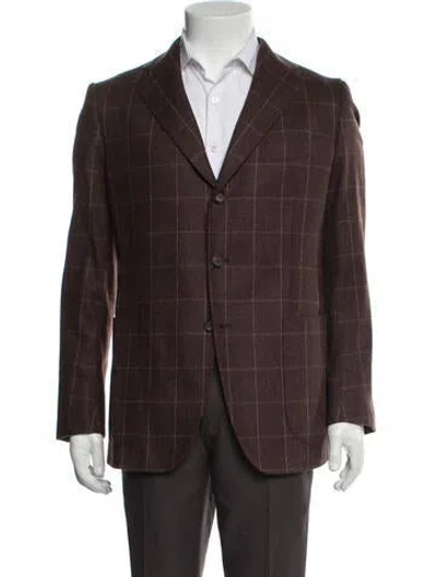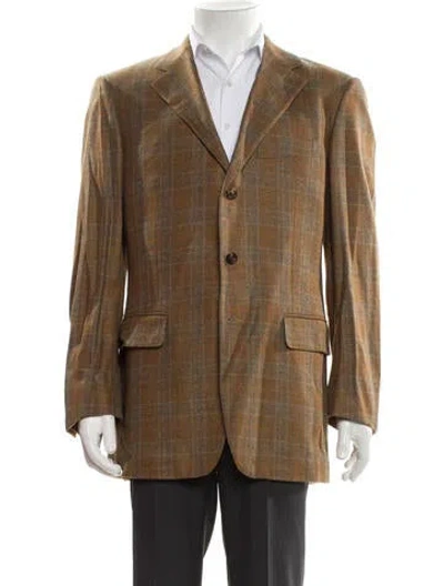 Pre-owned Cashmere Plaid Print Blazer In Brown