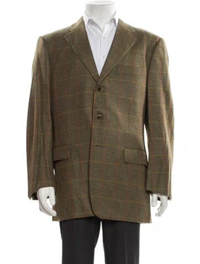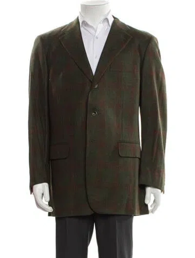 Pre-owned Cashmere Plaid Print Blazer In Green