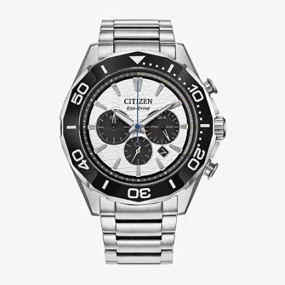 Eco-drive Men's Chronograph Modern Axiom Stainless Steel Bracelet Watch 43mm In Silver-tone