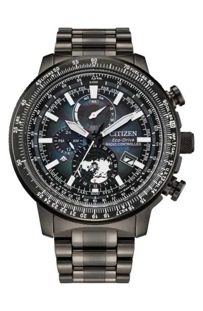 Eco-drive Men's Satellite Wave Gps Black-tone Stainless Steel Bracelet Watch 44mm