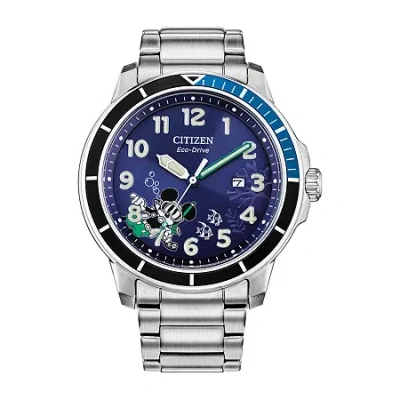 Mickey Water Sport Mickey Mouse Mens Silver Tone Stainless Steel Bracelet Watch Aw1529-81w