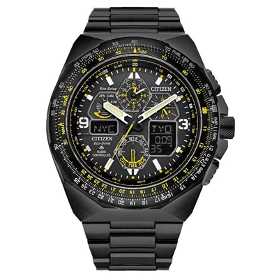 Pre-owned Promaster Skyhawk Black Dial Sapphire World Time Watch Jy8127-59e