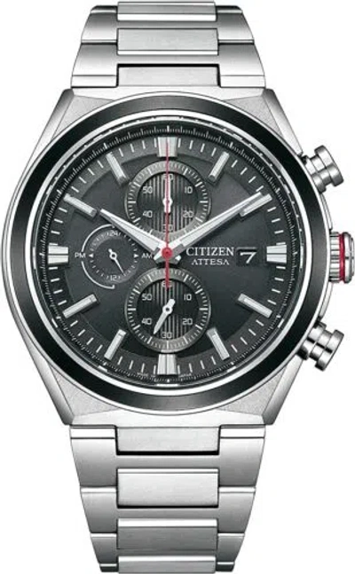 Pre-owned Attesa Ca0835-61h Eco-drive Titanium Black Chrono Watch Men Japan