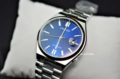 Pre-owned Automatic Blue Stainless Steel Sapphire Glass Mens Watch Nj0151-88x