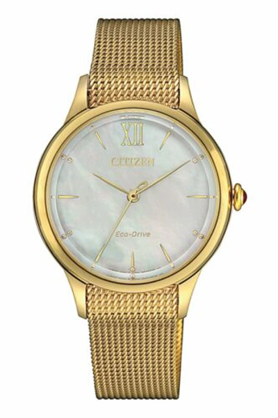 Pre-owned Eco-drive Signature Marne Yellow Gold Diamond Eo1102-51a $1795 Watch