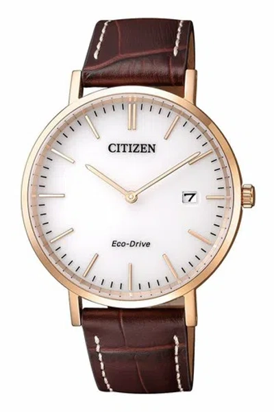 Pre-owned Au1083-13a Eco Drive Mans Watch White Dial Brown Strap Us4