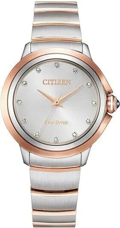 Pre-owned Em0956-54a Eco-drive Ceci Diamond Accent Rose Gold & Silver Ladies Watch