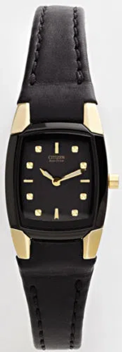 Pre-owned Eco-drive Ew9944-01e Women's Dress Black Leather Band Black Dial Watch