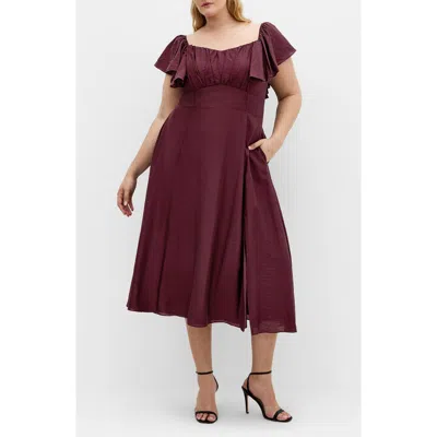 Alisa Flutter Sleeve Midi Dress In Burgundy