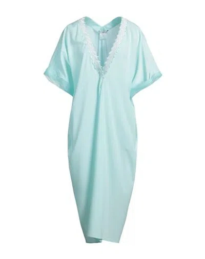 Woman Midi Dress Light Green Size L Viscose, Polyester In Blue