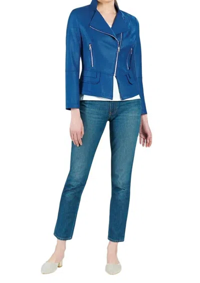 Biker Leather Jacket In Liquid Colbalt In Multi