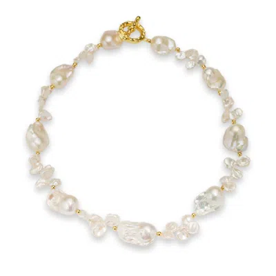 Women's Gold Natasha Petal & Baroque Pearl Beaded Necklace