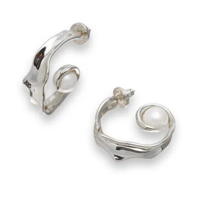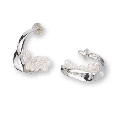 Women's Naomi Pearl Cluster Silver Molten Hoop Statement Earrings In Metallic