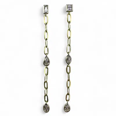 Women's Asymmetric Gemstone Drop Earrings Gold Plated Silver
