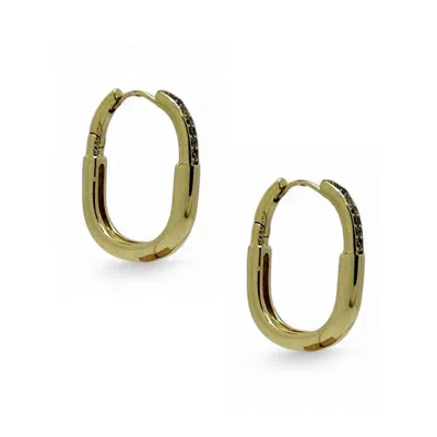 Women's Green / Gold Oval Pave Gemstone Gold Huggie Earrings - Emerald Green
